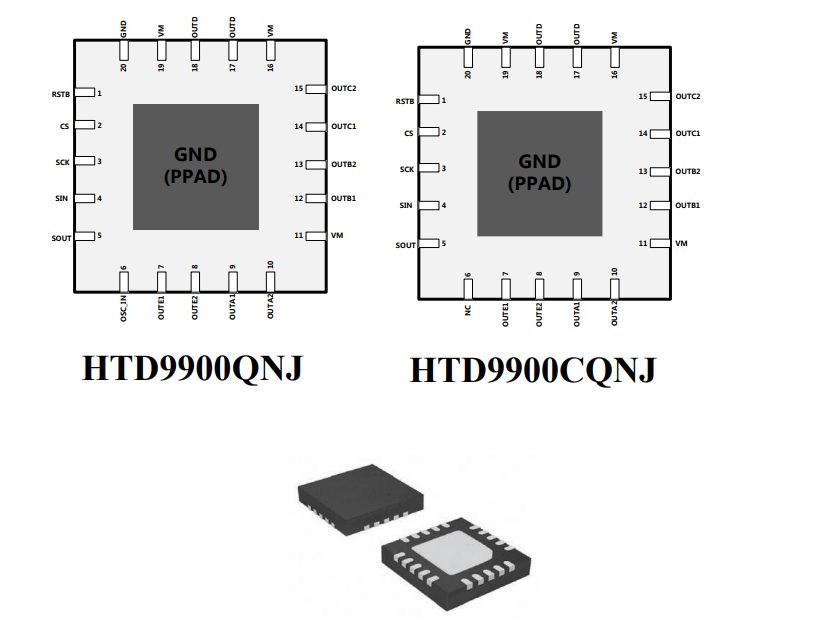 HTD9900提供带有散热焊盘的QFN20封装,无铅产品,符合环保标准