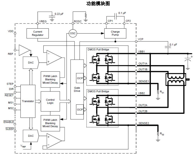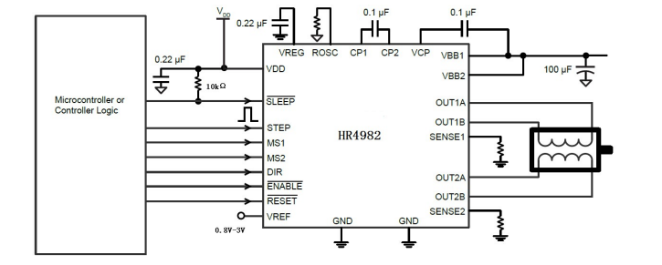 产品名称:HR4982 内置转换器和过流保护的微特步进电机驱动芯片