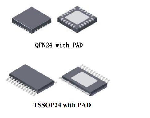 HR4985提供一种带有裸露焊盘的QFN-24封装,还有一种是带裸焊盘的TSSOP24,能有效改善散热性能,且是无铅产品,引脚框采用100%无锡电镀。