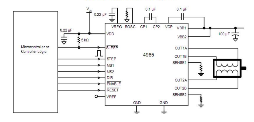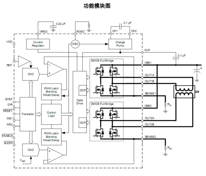 产品名称:HR4985 内置转换器和过流保护的微特步进电机驱动芯片