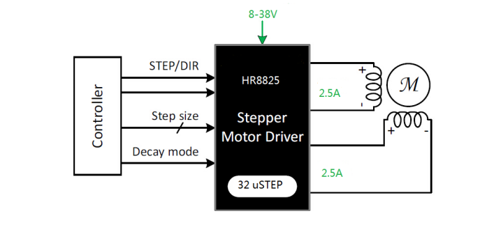 产品名称:HR8825 ( STEP/DIR微步进电机驱动芯片)