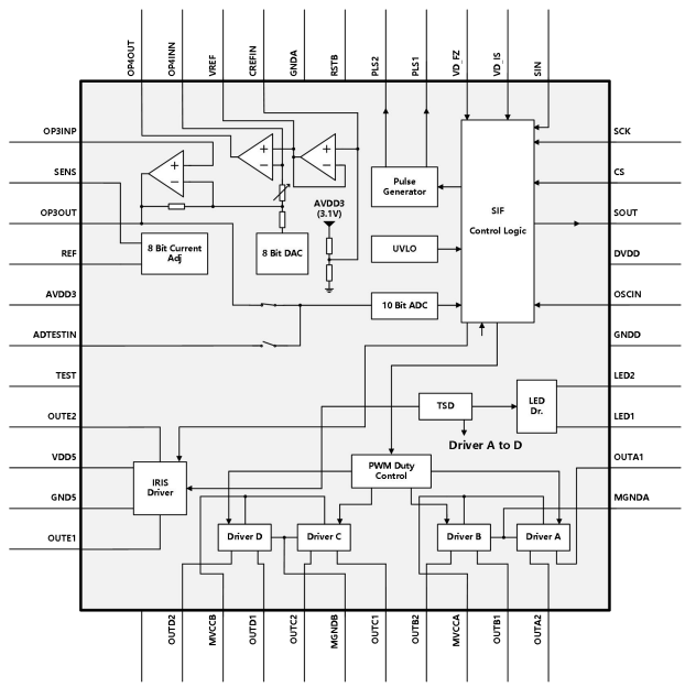 HTD9800是一款用于摄像机和安全监控摄像头的镜头驱动芯片,内置光圈控制功能。