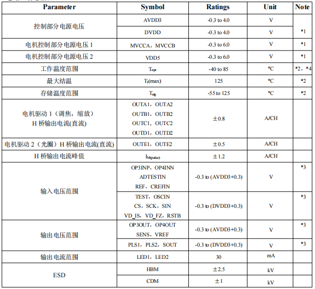 *3:(DVDD+0.3)不得超过 4.0V,(AVDD+0.3)不得超过 4.0V