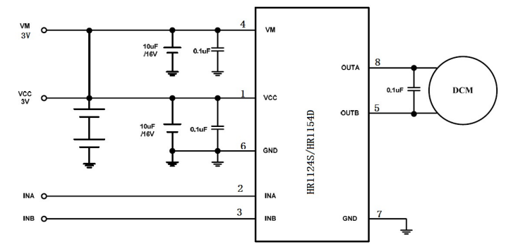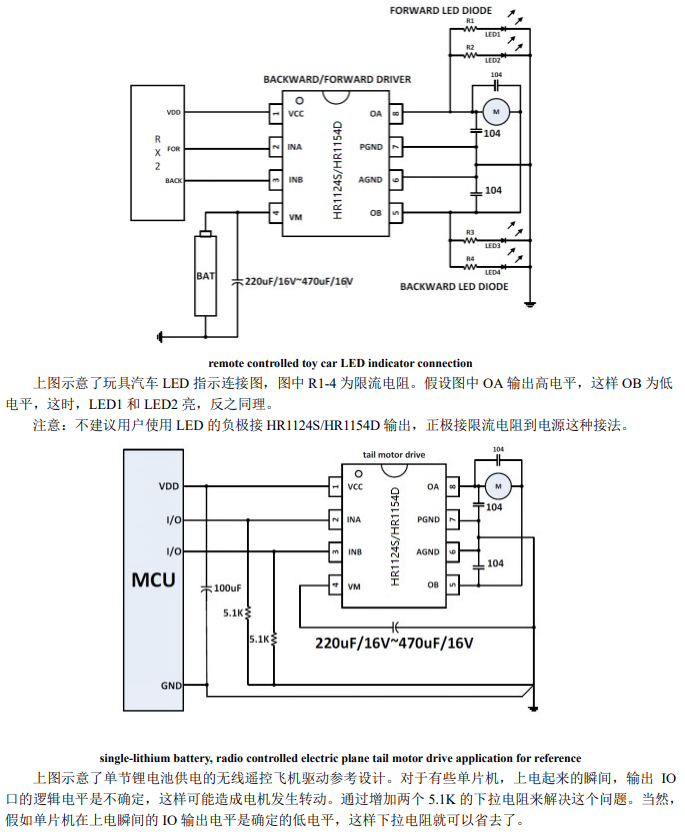 产品名称:HR1124S_HR1154D 玩具单通道直流电机驱动器