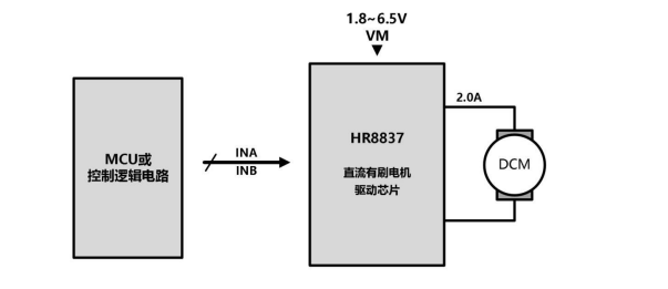 产品名称:HR8837 直流电机方案的单通道H桥驱动器芯片