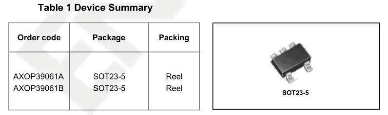 The AXOP39061 is a single channel low voltage (1.5V to 5.5V) operational amplifiers (opamps) with rail.to-rail