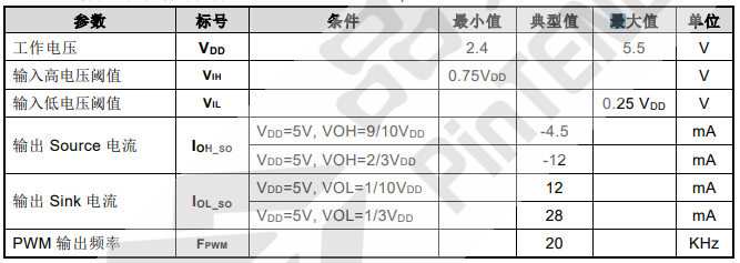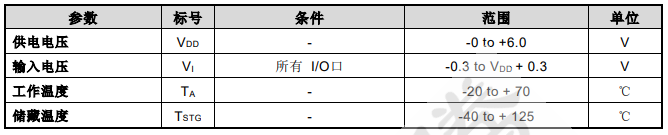 表 6 直流特性(如无特殊说明 VDD = 2.4V~5.5V,Temp = 25ºC)