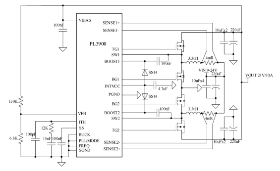 产品名称:PL3900 100V多相同步降压/升压控制器