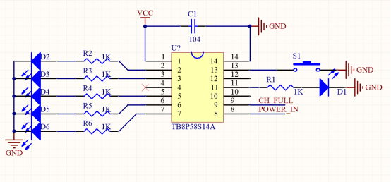 在充电时,依据电量,逐渐亮多,最高电压灯闪,9脚转为低后灯全亮,表示充满