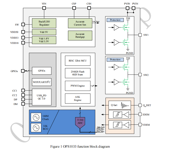 Figure 1 is the function block diagram of OPS1033 which is compliant with QI 1.3 and supports