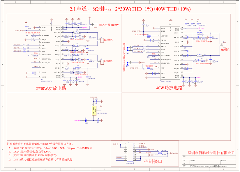 产片介绍:在追求极致听觉体验的声霸领域,佰泰盛世24V供电2 1声道解决方案,为家庭影院、多媒体注入更高性价比的方案。这款2×30W卫星箱+60W低音炮的黄金组合,在8Ω负载下以≤1%的失真率,打造