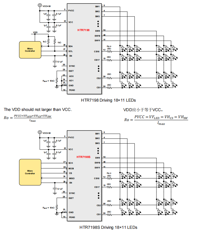 产品名称:HTR7198(S), HTR7144(S) 带自动呼吸功能的18x11, 18x8阵列LED 驱动器