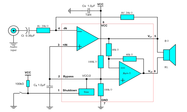5V-1.1W(8Ω负载),5V-1.6W(4Ω负载),