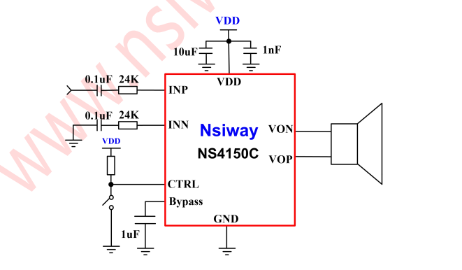产品名称:NS4150C 3.0W 单声道D 类音频功率放大器